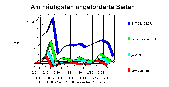Dieser Abschnitt identifiziert die populärsten Seiten der Web-Site und bestimmt, wie oft auf sie zugegriffen wurde. Darüber hinaus wird angegeben wie lang die Anwender diese Seite im Mittel einsehen.