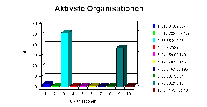 In diesem Abschnitt werden die Firmen bzw. Organisationen identifiziert, die am häufigsten auf Ihre Web-Site zugegriffen haben.